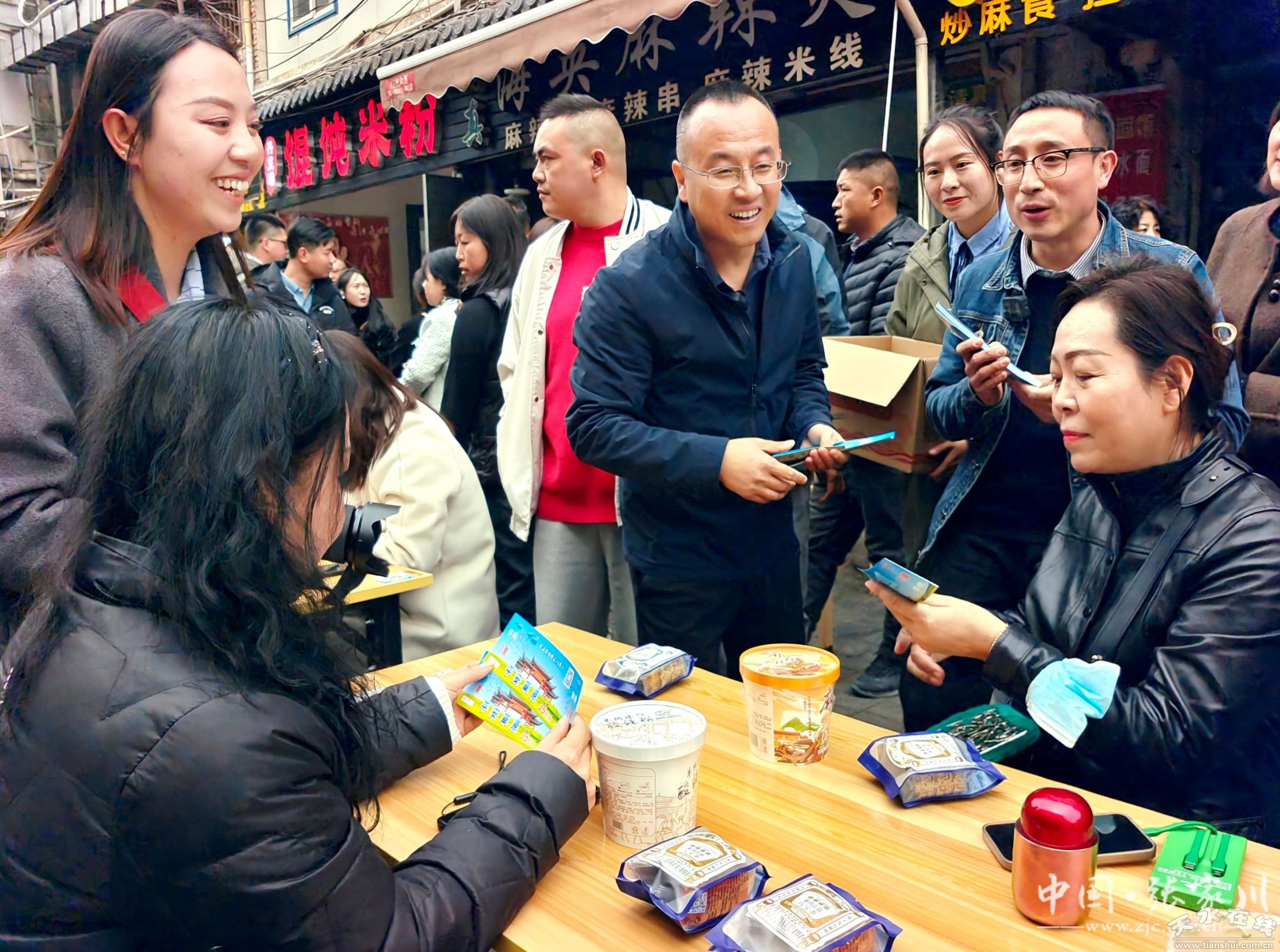“我是平安鄉(xiāng)的,今天來推介一下我們平安鄉(xiāng)的特產(chǎn)羊阿洋酸辣粉和平安草原景區(qū),歡迎大家來平安草原賞美景、品美食……”3月12日,在天水市秦州區(qū)大眾路四合院里,平安鄉(xiāng)鄉(xiāng)長蒲曉亮和推介組人員為食客推介平安鄉(xiāng)特色產(chǎn)品。隨著天水麻辣燙火出圈,張家川縣平安鄉(xiāng)主動出擊到秦州區(qū)接流量,開啟寵粉模式。