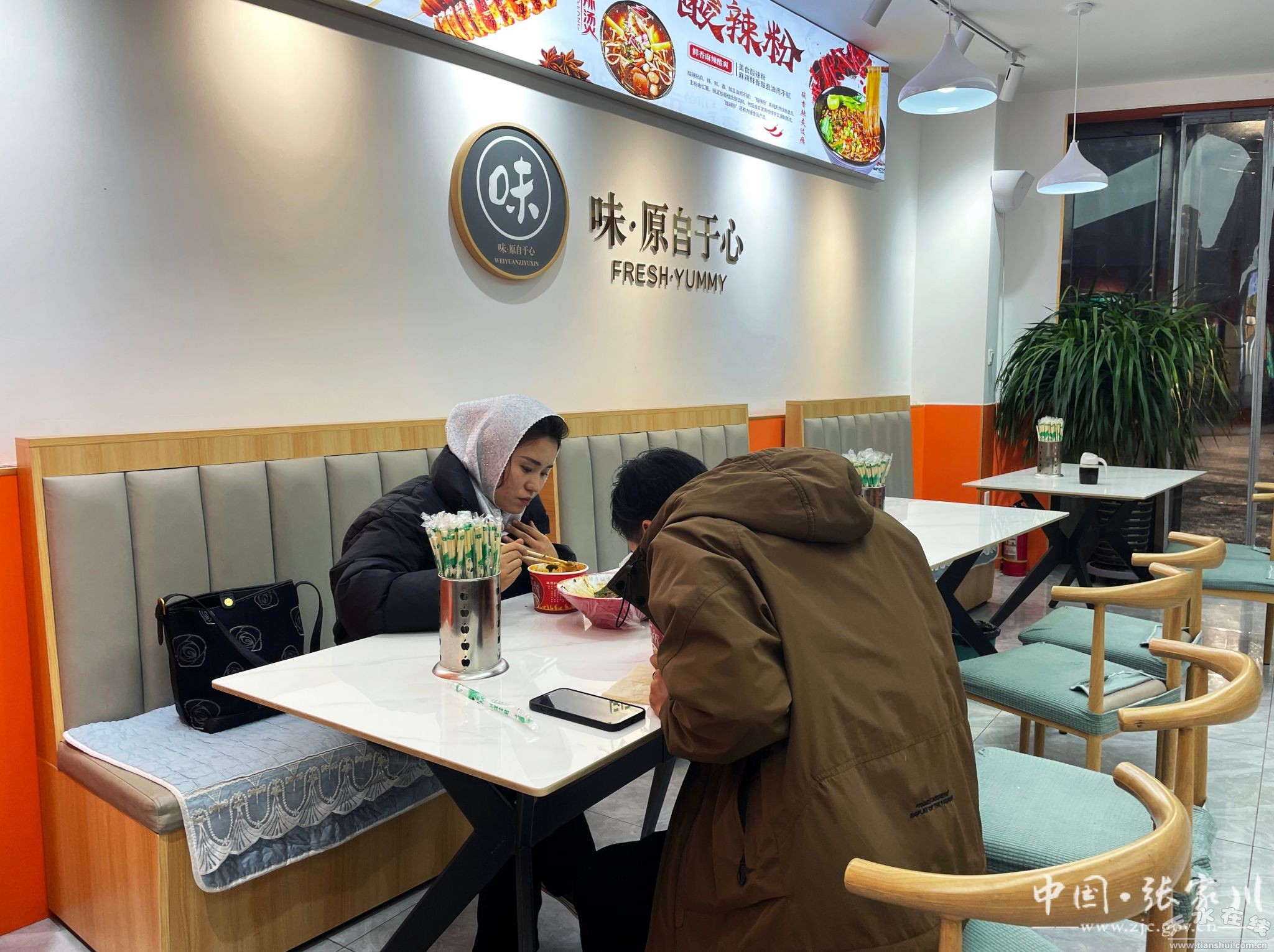 在張家川,麻辣燙更是一種社交的媒介。家人、朋友、戀人們圍坐在麻辣燙店的小桌前,共享這碗熱辣滾燙的美味,暢談生活的點(diǎn)點(diǎn)滴滴,溫馨而親切。這種獨(dú)特的社交體驗(yàn)讓麻辣燙在張家川人的心中占據(jù)了不可替代的地位。“我經(jīng)常在她家吃酸辣粉,她家的酸辣粉是我們縣的一絕,每隔一兩周我都要和朋友、家人過來吃一次。”食客小趙連連稱贊道。