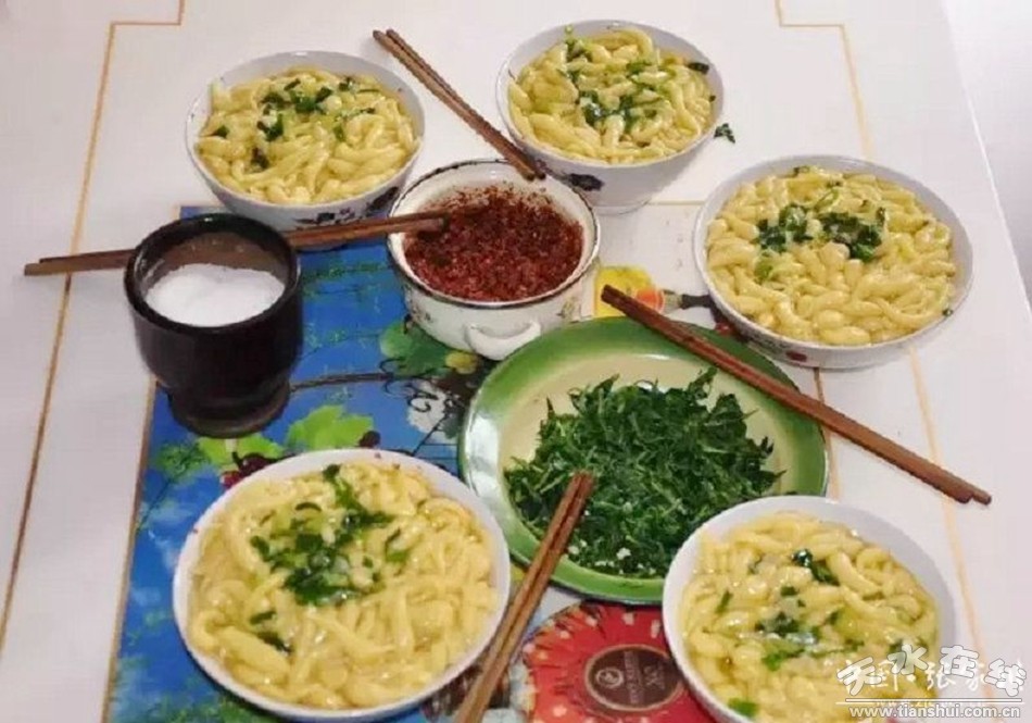 說起漿水拌湯,不得不提及漿水酸菜,在秦隴大地,特別是以秦邑周邊數(shù)縣,鄉(xiāng)鄰都離不開漿水酸菜,現(xiàn)實(shí)的老人更是這樣,尤其是現(xiàn)在人們生活好啦,油腥味重,幾天不吃漿水飯,總感到心內(nèi)不舒服,吃碗漿水拌湯,真會體察到“天朗氣清,惠風(fēng)和暢”的感覺。其實(shí)把面咯嗒用竹筷拌成面索索,下到開水鍋里,待熟后,將熗好的漿水酸菜和入,味調(diào)合適后,可入碗上桌,那味道可口可信,不妨你可照以上方法試試,品一品,我肯定,個(gè)中滋味上心頭,收效不少。