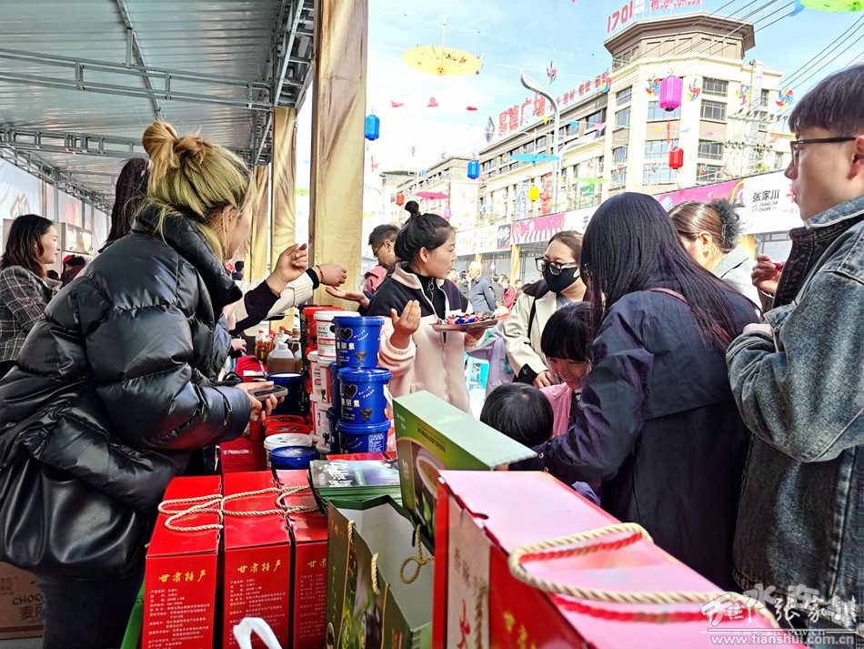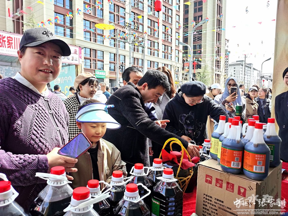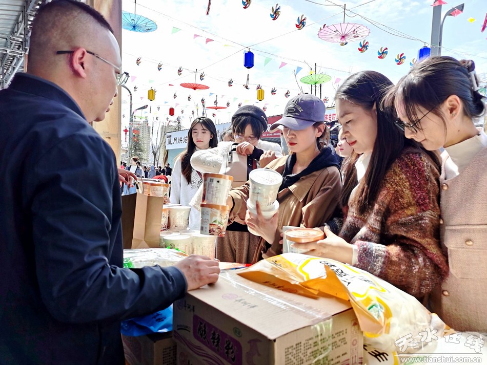 4月6日,在張家川縣易德廣場(chǎng)舉行的以“品天水麻辣燙游絲路張家川”為主題的張家川縣特色美食文化系列活動(dòng)現(xiàn)場(chǎng),只見人頭攢動(dòng),熙熙攘攘,各展位桌上,擺著琳瑯滿目的特色農(nóng)產(chǎn)品吸引眾多市民和游客駐足了解,人們圍在桌前詢問(wèn)價(jià)格、挑選產(chǎn)品、掃碼支付,場(chǎng)面十分熱鬧。