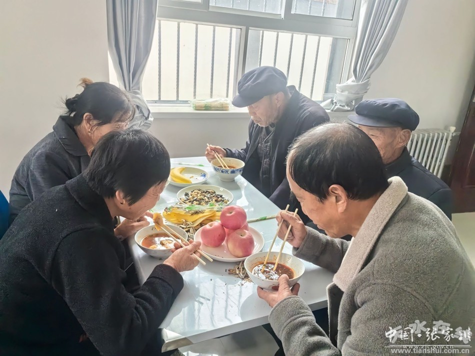 重陽(yáng)餃子宴,孝善暖人心,養(yǎng)老中心食堂里,老人們圍桌而坐,吃著水果瓜子,品嘗著香噴噴的餃子,拉家常,聊鄉(xiāng)情,現(xiàn)場(chǎng)歡聲笑語(yǔ),其樂融融,餃子吃在口中,暖在心里。