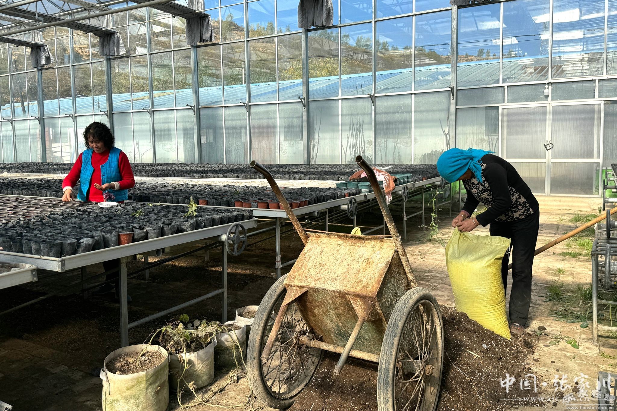 正值初冬時(shí)節(jié),合作社里忙碌不減,十余名工人對(duì)智能溫室里的花木盆景進(jìn)行除草打葉的日常維護(hù),也為明年供市場(chǎng)所需的鮮花進(jìn)行栽植培育!拔覀儸F(xiàn)在正在種植的都是采購(gòu)自山東、河南等地的月季、牡丹成品苗子,它們需要在大棚里培育一年,以供明年市場(chǎng)所需。最近進(jìn)行規(guī);嘤孽r花品種主要是歐石竹、太陽(yáng)花、蘭尾、馬蓮這四種!焙献魃缲(fù)責(zé)人楊森告訴記者。