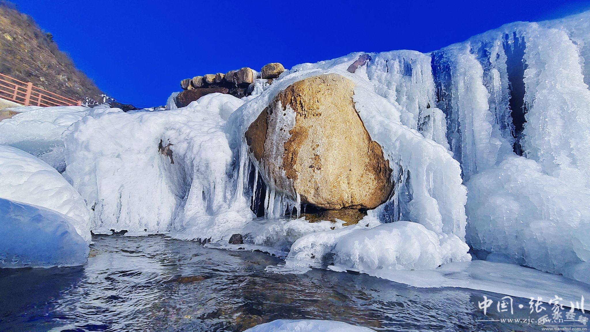 遠近高低各不同。當水流在寒冷的天氣中凝固,原本的潺潺流水化作了晶瑩剔透的冰瀑,它們或懸掛于峭壁之上,或鋪展于巖石之間,宛如大自然精心雕琢的藝術(shù)品。在陽光的照耀下,冰瀑閃爍著耀眼的光芒,每一面都像是被精心打磨過的鏡子,反射出五彩斑斕的光影。有的冰瀑如簾幕般垂直懸掛,仿佛能隔絕塵世的喧囂;有的則如波浪般起伏,展現(xiàn)出一種動態(tài)的美感。而當風輕輕吹過,冰瀑表面會泛起層層細膩的波紋,更添一份神秘與靈動。