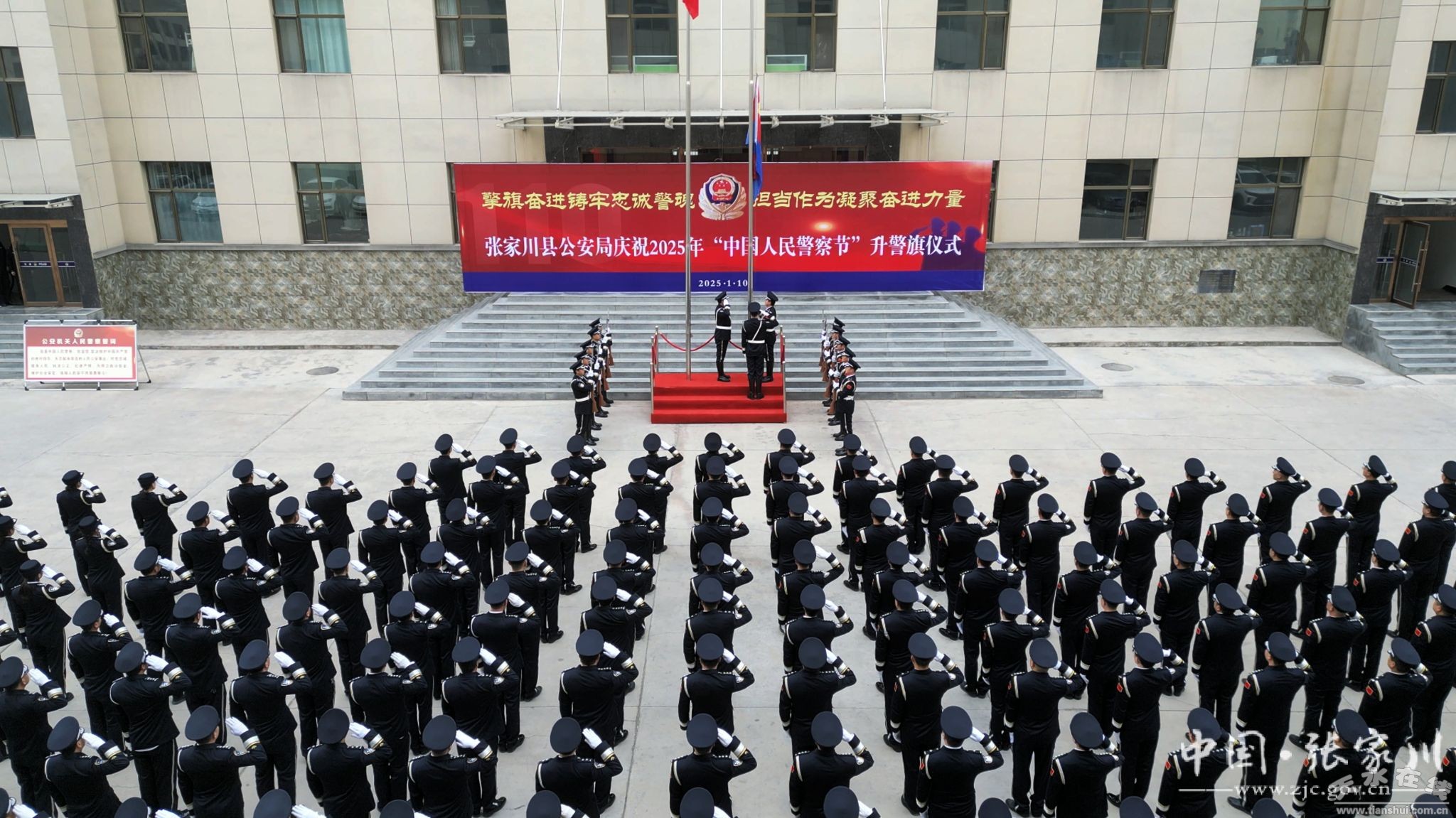 為慶祝第5個中國人民警察節(jié),進一步激發(fā)全警鑄警魂、守初心、擔(dān)使命的奮進動力,凝聚忠實履行新時代使命任務(wù)的思想共識、行動共識,1月10日,張家川縣公安局隆重舉行“擎旗奮進鑄牢忠誠警魂 擔(dān)當(dāng)作為凝聚奮進力量——慶祝2025年中國人民警察節(jié)”升警旗儀式。