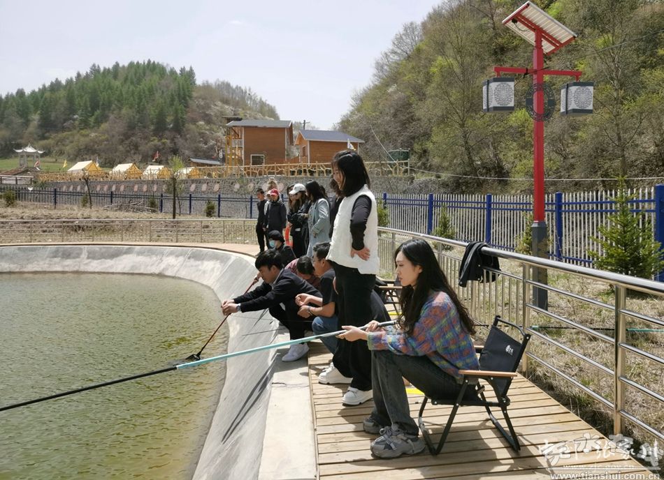 “早就聽說這里風(fēng)景好,這次趁著假期前有空,就和家人一起來了,真的沒讓我們失望,這里山水清新、空氣宜人,民風(fēng)淳樸,讓人身心放松!眮碜蕴焖挠慰挖w先生說道。在秦塬人家,游客們不僅能欣賞到絕美的自然景觀,還能參與豐富多樣的休閑活動。在冷水魚養(yǎng)殖基地,游客們可以體驗垂釣的樂趣,感受與大自然親密接觸的愜意。玩累了,步入農(nóng)家樂,品嘗地道的農(nóng)家菜、手工雜糧面等張家川特色美食,讓人唇齒留香,回味無窮。