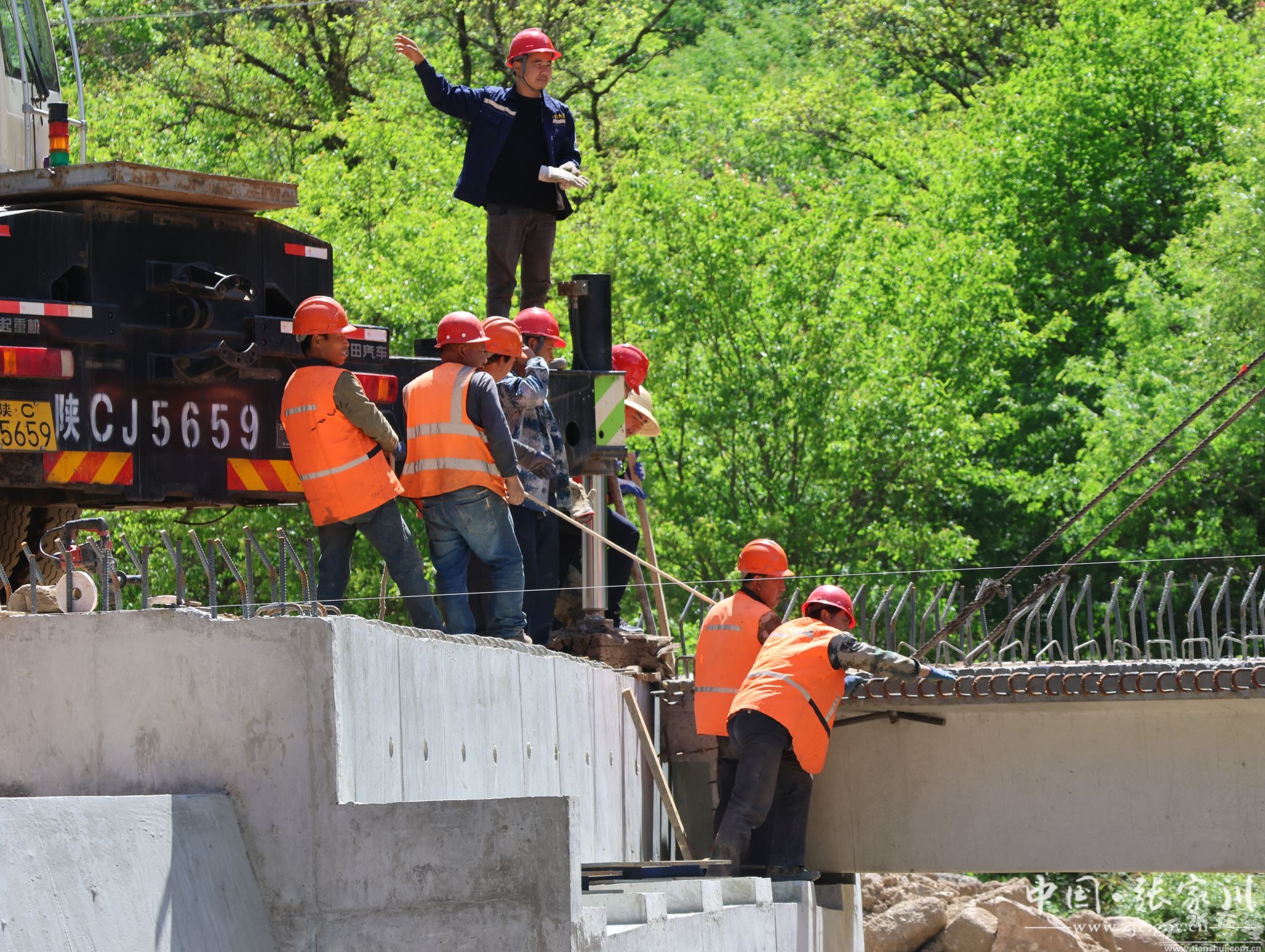 日前,隨著最后一片T梁穩(wěn)穩(wěn)落在橋臺(tái)蓋梁支座上,至此,由張家川公路段承建的S221線三股水4號(hào)橋危舊橋梁改造工程順利完成梁板安裝。