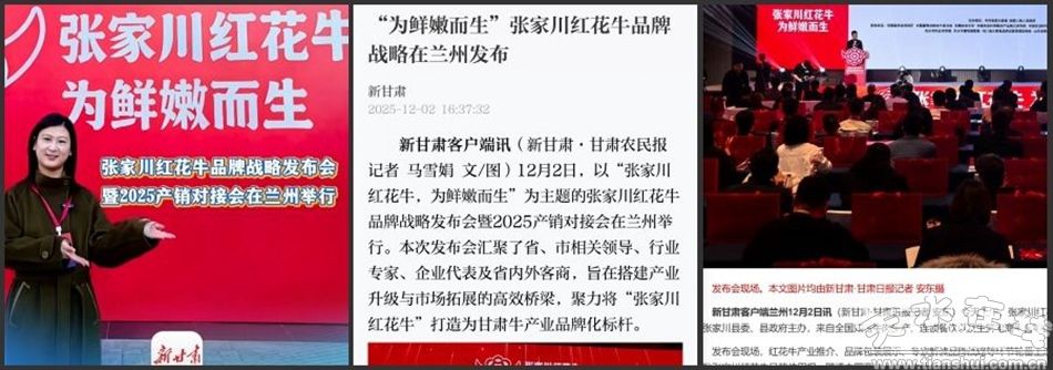 “品牌化是牛業(yè)高質量發(fā)展的必由之路”,媒體普遍關注到張家川紅花牛對行業(yè)痛點的破解——通過產學研融合引入凍精改良技術,繁育成功率提升30%;依托“總倉+分倉”冷鏈體系,最大限度鎖住新鮮;借助“甘味”品牌矩陣,讓地方特色向“國家名片”躍升。