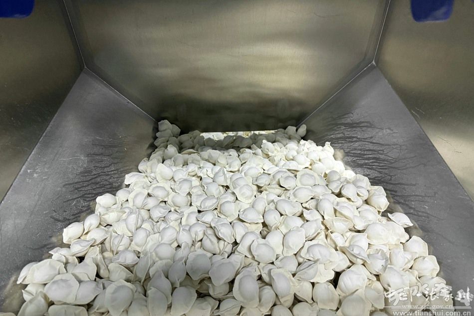生產(chǎn)車間科學(xué)布局,生產(chǎn)流水線一氣呵成。擇好的新鮮蔬菜進(jìn)入全機(jī)械化洗菜區(qū);調(diào)餡車間里調(diào)味料的配比精確到克,拌餡機(jī)將食材充分拌勻;真空和面機(jī)將面團(tuán)和得光滑均勻;隨著面皮和餡料被送入水餃機(jī),一顆顆圓鼓鼓的水餃很快就出現(xiàn)在傳送帶上,這臺(tái)高功率的水餃機(jī)每小時(shí)可生產(chǎn)七萬(wàn)個(gè)水餃。