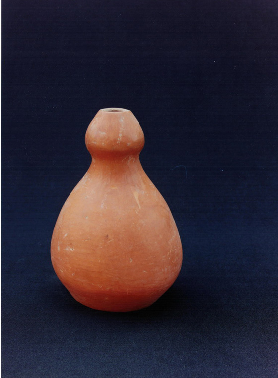 紅陶葫蘆瓶,半坡類型,口徑2厘米,高15厘米。秦安縣五營鄉(xiāng)邵店村出土
