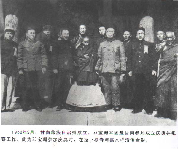 鄧寶珊對(duì)少數(shù)民族文化遺產(chǎn)也非常的關(guān)心。1933年,甘南藏區(qū)的西倉、雙岔兩步由于草山和林地問題矛盾激化,兩地寺院均毀于械斗戰(zhàn)火。次年,鄧寶珊作為查辦大員,前往處理事件,堅(jiān)拒饋贈(zèng),明斷是非,并以巨款重罰肇事雙方,罰款大部分用于修復(fù)寺院,從而保護(hù)了藏民族歷史文化遺產(chǎn)。鄧任省長后,他熟悉省情,注意團(tuán)結(jié)民族宗教界上層人士,時(shí)時(shí)處處講大局,在化解矛盾、穩(wěn)定社會(huì)方面卓有貢獻(xiàn)。
