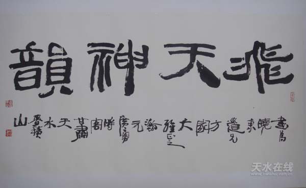 其壁畫作品場面宏大,布局張弛有度;造型準確洗練,動態(tài)優(yōu)美生動;色彩簡潔明快、裝飾性強,或古樸典雅、蒼桑厚重,或斑斕絢麗,明朗華貴;面容安祥得體、眉宇之間尤為傳神;線條流暢飛動、體態(tài)輕盈飄逸。其大型飛天組畫《絲路花雨》、《飛天神韻》、《天降祥瑞》、《和諧樂章》,大型經(jīng)變畫《西方凈土變》、《維摩經(jīng)變》、《睒子本生》、《東王公西王母》等作品從整體而言,無不透托著圣潔、祥瑞、神秘、和諧的氛圍,折射出了一位實力派畫家的深厚功力。山水國畫構(gòu)思精巧、意境深遠、墨色蒼潤、筆力雄健、氣勢恢宏,彰顯出一位中青年畫家銳氣十足的張揚個性和靈悟洞開的藝術才氣。