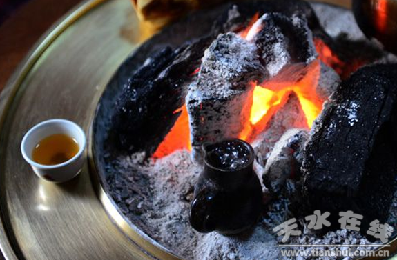 茶和咖啡,可可被認為是并駕并驅(qū)的世界三大飲料。早在唐宋,我國已有濃厚的飲茶習慣,而北宋最大的茶馬交易口岸管理機構(gòu)之一的茶馬司就設于秦州(今天水)。而罐罐茶源于何時現(xiàn)已無從考證。罐罐茶文化是好客的禮儀。它具有一次茶量少,茶香四溢,味道濃厚的特點。在秦源,有些人十分熱衷于此道,“寧肯一天不吃飯,不可一日無此君”。主人打盤盤腿坐在炕頭,一會兒下茶,一會兒倒水,攪動,沏茶,弄火,忙個不停。據(jù)陸羽的《茶經(jīng)》載:“其沸,如魚月,微有聲,為一沸;緣邊如涌,泉連珠,為二沸;騰波鼓浪,為三沸!贝酥蟛璺ㄔ谠S多地方都已經(jīng)失傳了,或者被各種泡茶所代替。唯有天水和粵、閩等地方至今保留著這種古老的煮茶法,被譽之為“功夫茶”。但見白瓷盅盅內(nèi)映紅茶,色調(diào)更是分明。頗具情趣,又極富古韻。