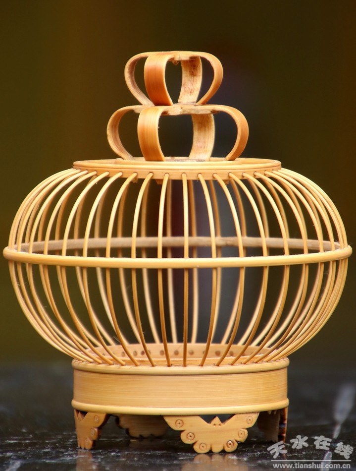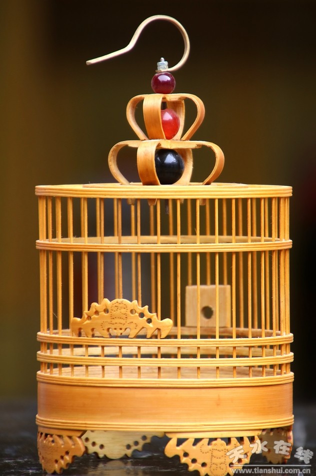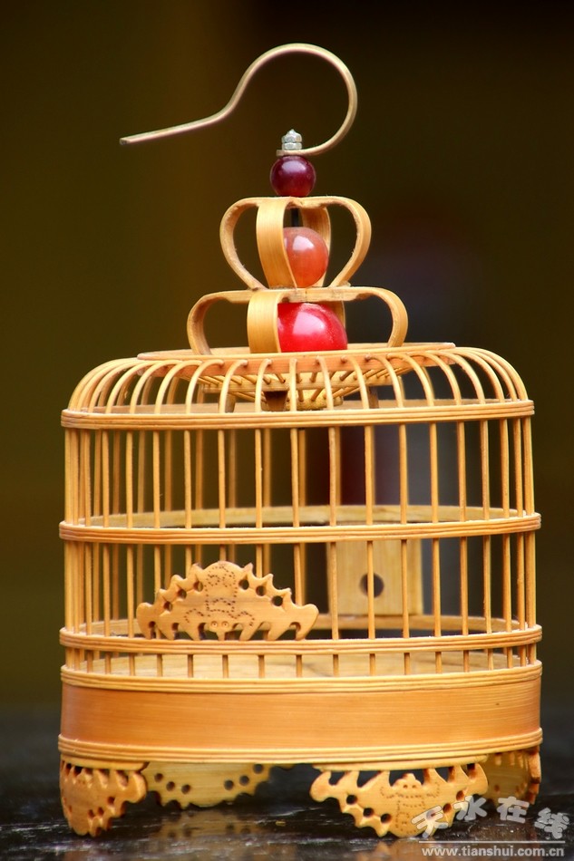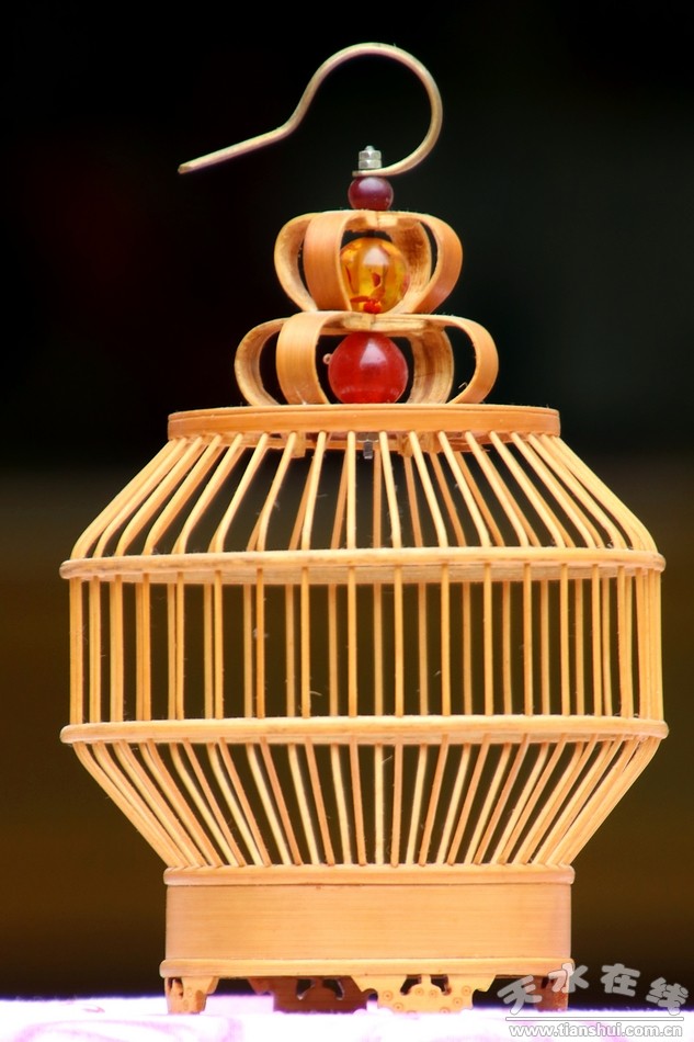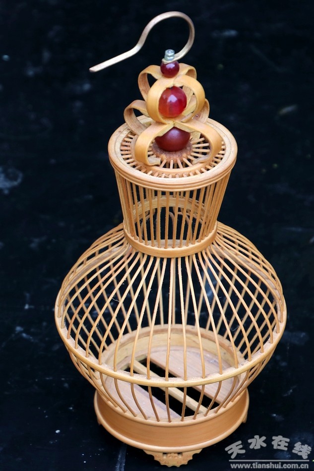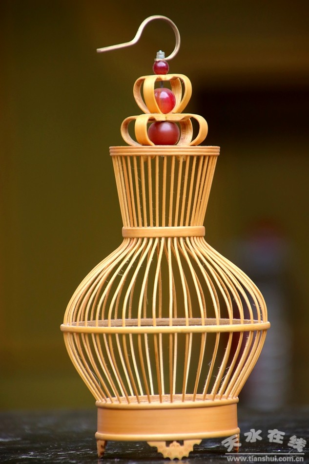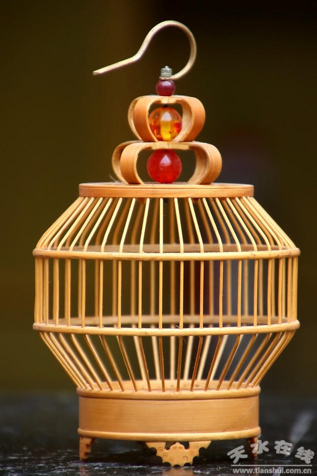 剩下的就是裝飾,裴永祥老人做了蝙蝠模樣的小竹片用作籠子的底座,一共四個(gè),還有一個(gè)鑲嵌在籠子中間部位作為關(guān)螞蚱的小門,也就是五只蝙蝠,寓意“五福”。而在螞蚱籠的頂端部位,他可是專門鑲嵌了幾顆類似瑪瑙的紅珠子和一個(gè)小掛鉤,古典、精致、靈巧。幾顆紅珠子也是整個(gè)制作過程的點(diǎn)睛之筆,有了它們的點(diǎn)綴,小小的螞蚱籠在陽光下更是玲瓏剔透,獨(dú)具一格。真是讓小編愛不釋手,為之傾心!