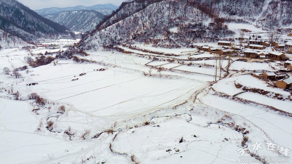 初春的雪花朵兒,舞動(dòng)滿天的情絲,所到處,無不散落柔情。晶瑩的雪花飄零在龍口村,在觸入塵泥的瞬間,露出惹人憐愛的模樣,地上的積雪足足有五六十公分厚,漫山遍野的銀裝素裹,鋪砌出一座明凈潔白的城池。如果夏天繁花似錦的草地是濃妝,那初春下過雪的山原則是淡妝,淡妝濃抹總相宜,龍口還是素顏美!迎雪前行,感受與它的肌膚之親,有些急迫,有點(diǎn)輕柔,還有落在臉上瞬間消融的冰冰涼。置身于馬鹿鎮(zhèn),看春雪盡情揮灑,把一個(gè)漸露生機(jī)的季節(jié),淋漓的書寫成一幅千般風(fēng)情、萬種妖嬈的水墨畫。