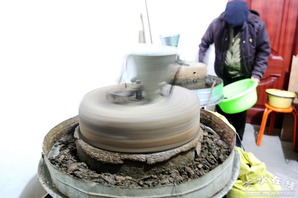 一走進(jìn)高旺生家,就看到他和妻子王慧明正在張羅著磨麻子,“來(lái)得可真巧,我們正準(zhǔn)備給秦都明悅酒店做麻腐呢!”高旺生嫻熟地舀起一勺麻子,倒入石磨上的漏斗里,“因?yàn)楝F(xiàn)在餐飲市場(chǎng)對(duì)麻腐的需求量增大,做麻腐的人又少,我們磨麻子都改用電石磨了,比以前的石磨能省時(shí)省力一些!备咄f(shuō)著,給石磨通上了電,只見(jiàn)麻子一顆顆滾進(jìn)帶凹槽的石磨間,隨著一陣噼里啪啦的響聲,麻子粒被碾碎成了泥狀,一股麻子仁的香味漾滿(mǎn)小屋。