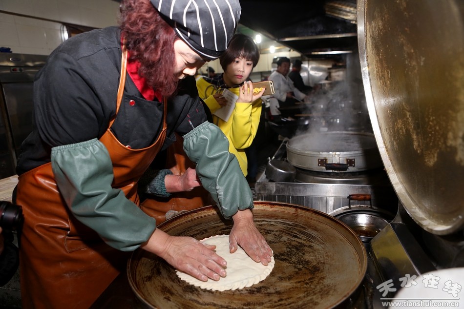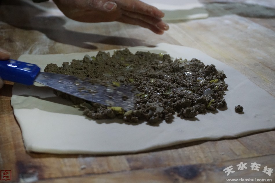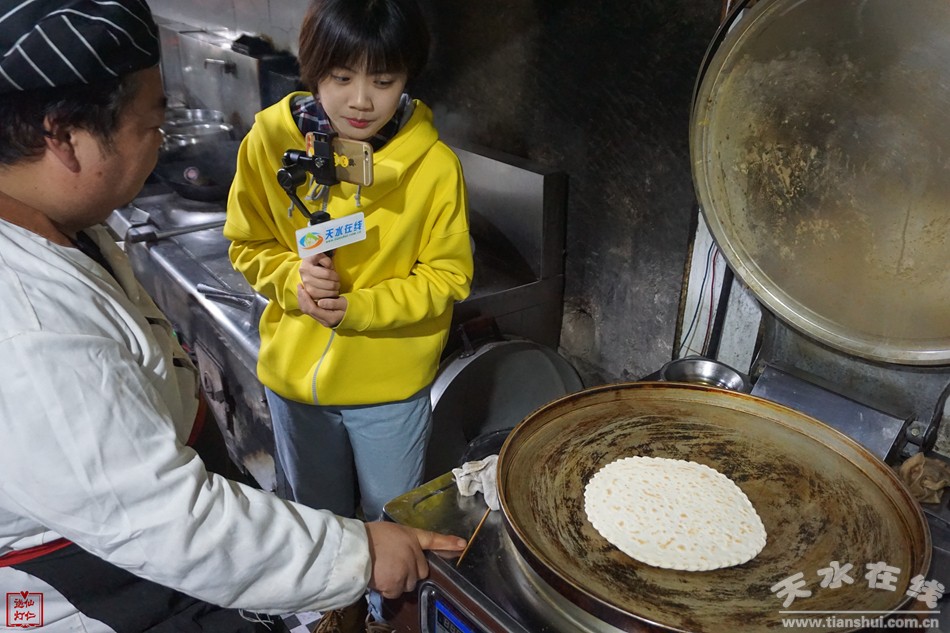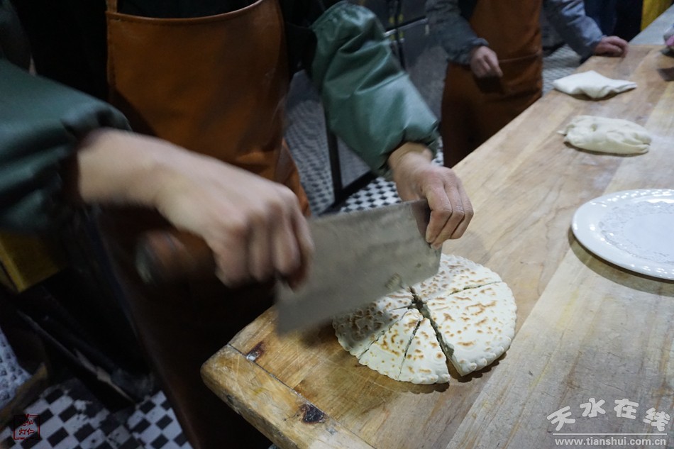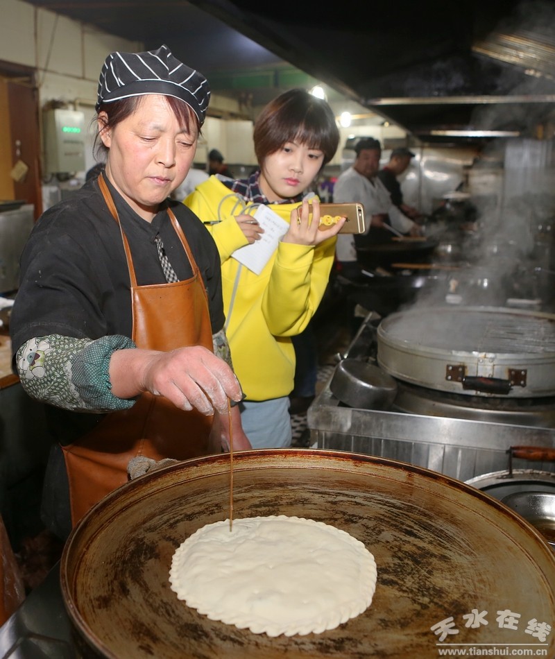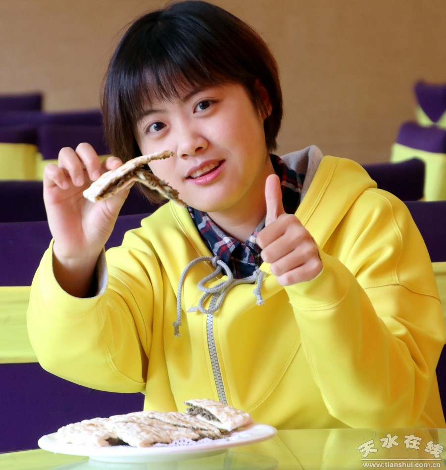 熱騰騰的麻腐餅剛一上桌,馬正榮就提醒小編最好趁熱吃,因?yàn)閵A了炒過(guò)的餡料,放涼后烙餅容易變軟,口感會(huì)有所影響。烙好的麻腐餅看起來(lái)酥脆可口,咬一口下去,卻出乎意料的饃瓤綿軟,滿(mǎn)口溢香。麻子獨(dú)特的清香和餅子的麥香交融在一起,不需要佐以蘸料,就能讓人食之不膩,回味無(wú)窮,那是除了天水外在任何地方都吃不到的美味。尤其在初春乍暖還寒之時(shí),能吃上一口香氣誘人的麻腐餅,讓人不禁感嘆,從制作麻腐到烙餅出鍋,這三個(gè)多小時(shí)真是沒(méi)白等!