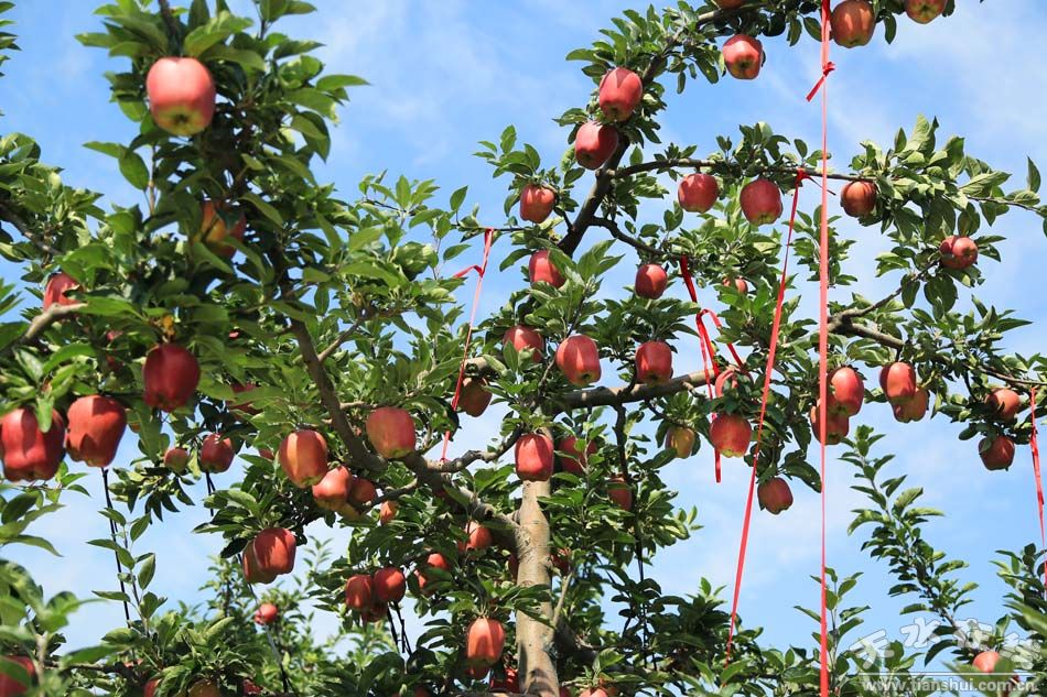 天水蘋果栽培區(qū)位于全市70個(gè)重點(diǎn)鄉(xiāng)鎮(zhèn),分布在渭河中上游、葫蘆河流域,以及藉河、散度河、牛頭河流域的河谷川道和淺山區(qū),種植區(qū)海拔1000-1700米左右。在栽培過程中,選用元帥系3-5代優(yōu)良品種的俄矮2號(hào)、天汪1號(hào)首紅、阿斯、超紅等,通過培肥土壤,實(shí)施果園種草覆草和覆蓋黑地膜,加強(qiáng)果園綜合管理和嚴(yán)格的花果管理,果實(shí)套袋等先進(jìn)實(shí)用的技術(shù),加之特殊的地理生態(tài)環(huán)境,生產(chǎn)出形正、個(gè)大、色艷、味美的“花!碧O果。果實(shí)上市,適逢中秋節(jié)和國慶節(jié),大宗紅富士蘋果還未成熟,在市場(chǎng)競(jìng)爭(zhēng)中優(yōu)勢(shì)明顯。