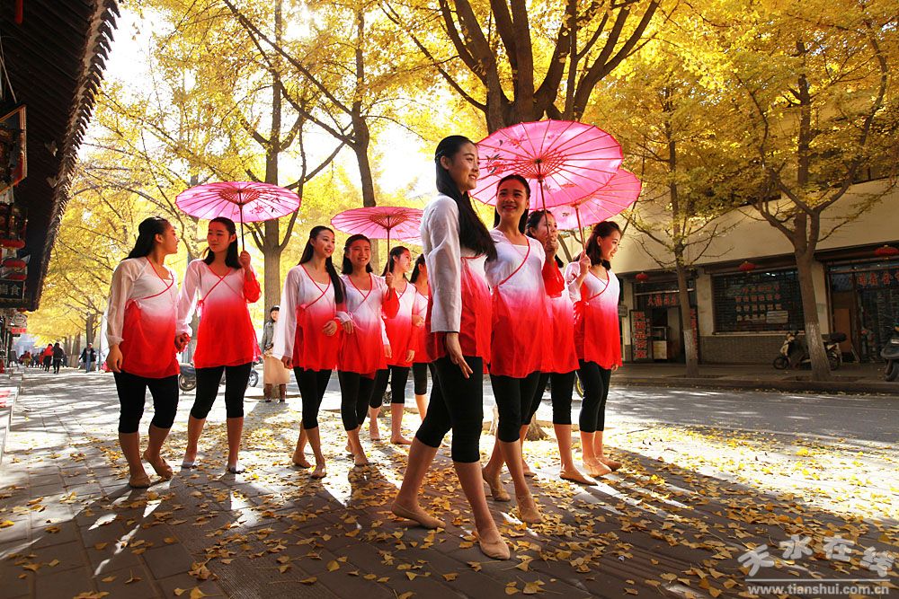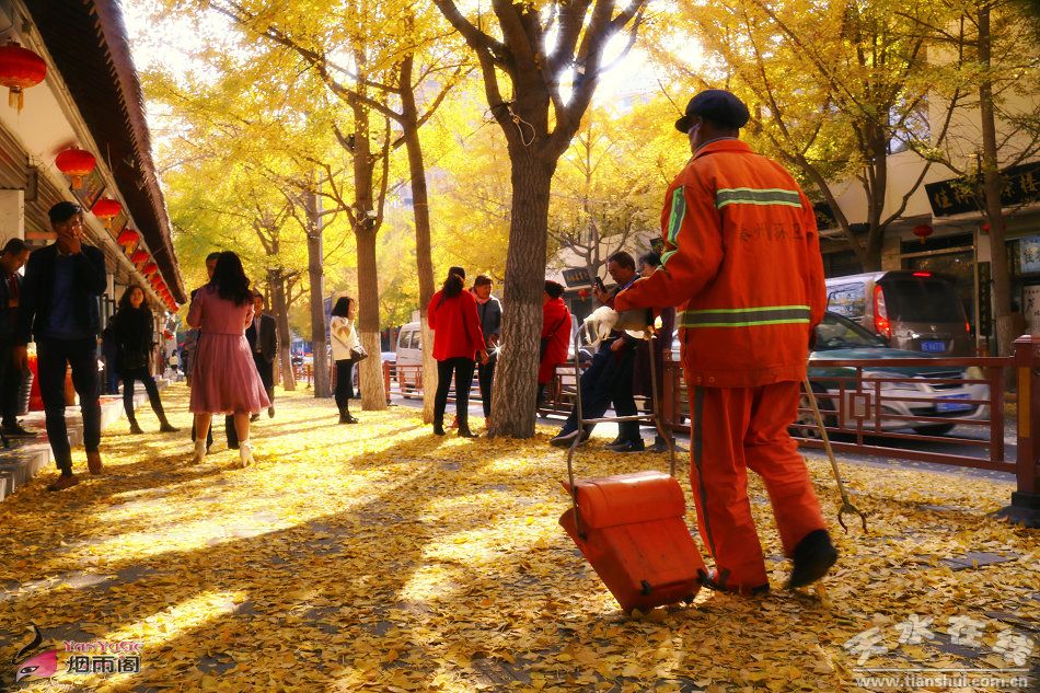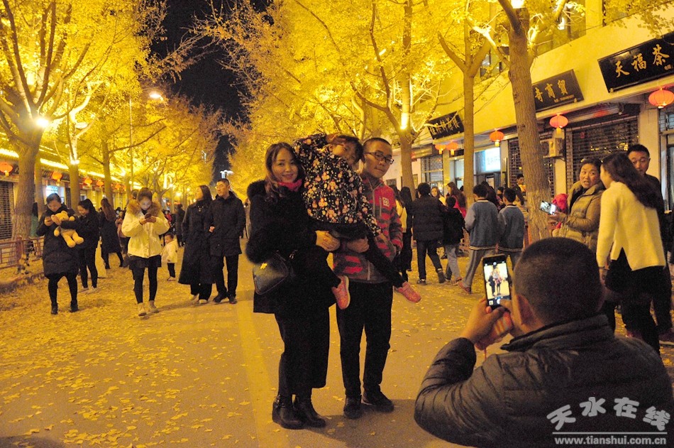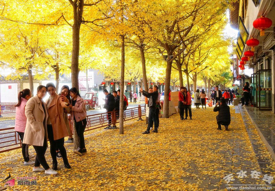 年輕的情侶,牽著手漫步在金色里。深秋已冷,他們卻短袖連衣裙,為火熱的網(wǎng)紅街,做了最生動的注解。94歲的老人家,帶著兒子、孫子、重孫子,在銀樹金葉下拍張全家福,只因有“杏(信)”,四世同堂,福之至也,天水這座不高不低、不南不北、不干不濕、不大不小、不緊不慢的城市,會讓人心神愉悅,健康長壽的。