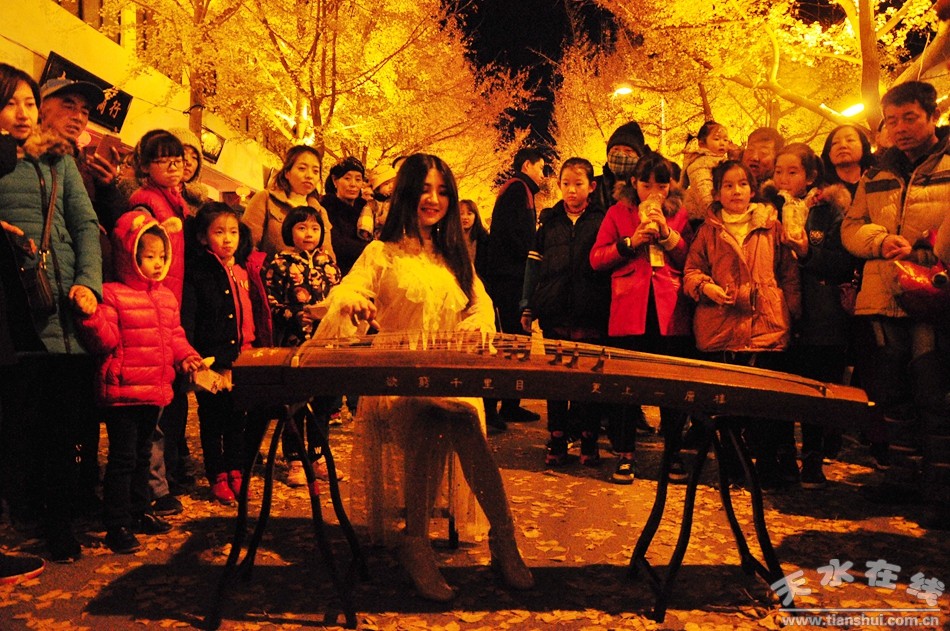 古希臘神話中,酒神狄奧尼索斯是藝術(shù)之神,尼采強烈呼喚的,就是酒神精神。黃金大道的狂歡,每個人都變成了天才的藝術(shù)之神,不過,希臘的酒神披著橄欖枝,天水的酒神們沐浴銀杏葉。天水,是秦公簋出土之地,簋,古之食器,北京簋街,中外食客的天堂,追根尋源,其在天水。鼎、爵、角、觚、觶,編鐘,先人的酒器、樂器,禮器,紛至沓來,和時尚的人群一起,構(gòu)造起千年穿越的神話!爸熊娭镁骑嫐w客,胡琴琵琶與羌笛”,作為絲綢之路走出長安的第一站,天水和進入西域的橋頭堡敦煌一樣,是中西文化薈萃之地。西來的樂器舞蹈,在麥積山的佛像前膜拜,學會一樣的東方微笑,向長安進發(fā)。黃金大道上,琵琶撥起來,鋼琴彈起來,古琴奏起來,古老的塤也吹起來。塤,在大地灣時代就已吹響。夜幕下,伏羲吹著塤向女媧表露心聲,低沉幽婉,其聲如訴。伏羲十四大功績之一,即制琴瑟,做樂曲。琴瑟相偕,幸福吉祥,是從古到今中華民族共同的愿望,也是黃金大道上最黃金的真理。