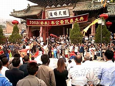 ▲2003年的節(jié)會(huì)為期4天,每天安排了一個(gè)高潮活動(dòng)。第一天是節(jié)會(huì)開(kāi)幕式,第二天是公祭伏羲大典,第三天是焰火晚會(huì),第四天是明星演唱會(huì)。 這是天水在線發(fā)布的節(jié)會(huì)開(kāi)幕儀式新聞。