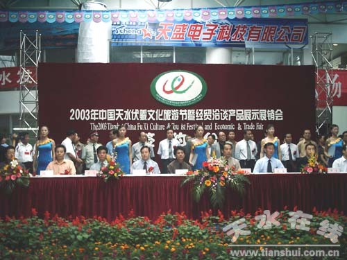 ▲2003年的節(jié)會(huì)為期4天,每天安排了一個(gè)高潮活動(dòng)。第一天是節(jié)會(huì)開(kāi)幕式,第二天是公祭伏羲大典,第三天是焰火晚會(huì),第四天是明星演唱會(huì)。 這是天水在線當(dāng)時(shí)網(wǎng)絡(luò)直播時(shí)發(fā)布的節(jié)會(huì)項(xiàng)目簽約儀式的圖片。