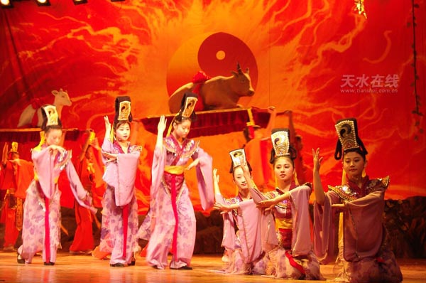 2006年10月5日晚,第四屆海峽兩岸中華傳統(tǒng)文化與現(xiàn)代化研討會文藝晚會“羲皇頌”,在天水市秦州劇院舉行。全國人大常委會副委員長許嘉璐,全國政協(xié)副主席、民進中央副主席張懷西,甘肅省委書記、省長陸浩等領(lǐng)導(dǎo)與出席“第四屆海峽兩岸中華傳統(tǒng)文化與現(xiàn)代化研討會”的代表、新聞記者等觀看了由天水市歌舞團、甘肅省藝術(shù)學(xué)校天水分校演出的十三個文藝節(jié)目。
