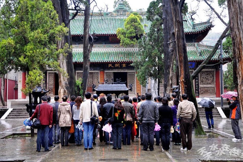 外面的雨依舊在下,天色更重,已到半夜時(shí)分,自己也困了,不知不覺中依著大殿里的柱子慢慢睡著了。等到醒來時(shí)天已發(fā)白,再次叩拜了伏羲后離開,并許下了一個(gè)承諾:“每年這個(gè)時(shí)節(jié)必須到天水叩拜伏羲!