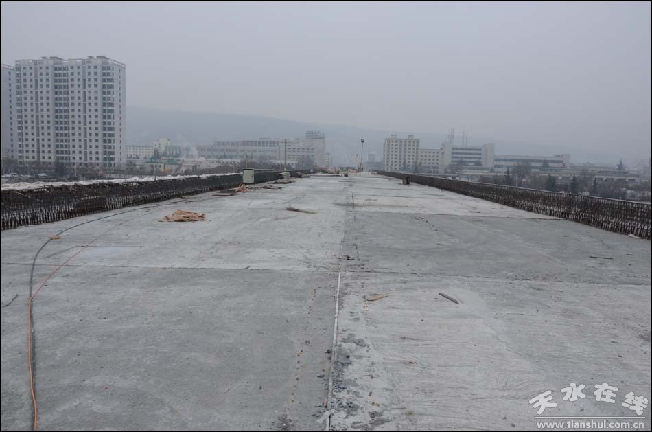 ▲2015年12月23日,記者在天水雙橋藉河大橋工地看到,藉河大橋長長的橋身橫跨藉河,顯得氣勢雄偉,高大偉岸,橋身下工人們正在拆卸橋梁支架,河道上有挖崛機和重型卡車正在疏理河道,橋頭立交橋下車流穿梭,橋上地面工程還在有序進行。站在寬闊的大橋上,視野開闊,兩岸美景盡收眼底,讓人感覺非常舒暢。