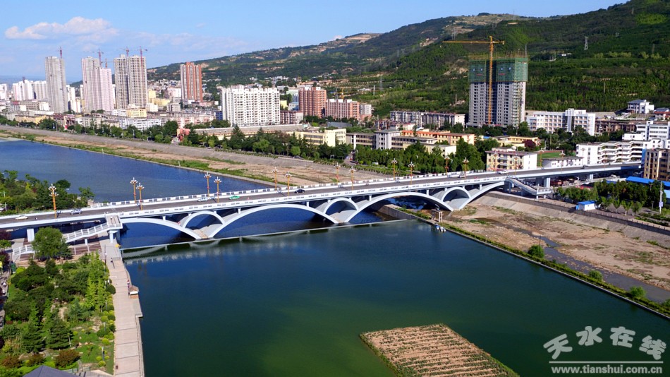 ▲2016年7月19日,天水在線無人機航拍小組對今年上半年建成通車的雙橋藉河大橋進行航拍。