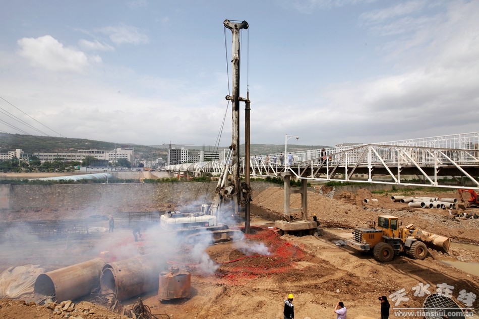 ▲2014年5月14日下午2:30分,隨著一陣陣鞭炮聲在藉河天水雙橋大橋工地上輕脆地炸響,備受全市人民矚目的天水雙橋大橋工程此刻開始打下了第一個橋樁,這也標志著天水雙橋大橋開始進入實質(zhì)性的工程施工階段。