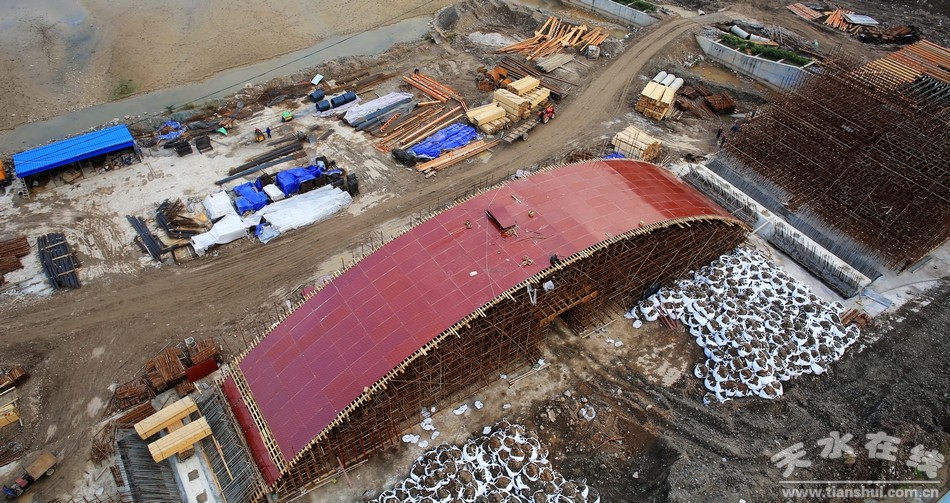 ▲2014年4月29日,在沒有舉行任何形式的開工儀式的情況下,天水雙橋大橋悄然開工建設(shè)。5月2日上午,天水在線工作人員帶著十箱礦泉水等慰問品來到雙橋大橋建設(shè)工地,代表網(wǎng)友祝賀工程開工,向工程建設(shè)者們表達敬意和慰問,希望他們能夠保質(zhì)保量,按期完工,讓這一惠民工程早日造福天水人民。
