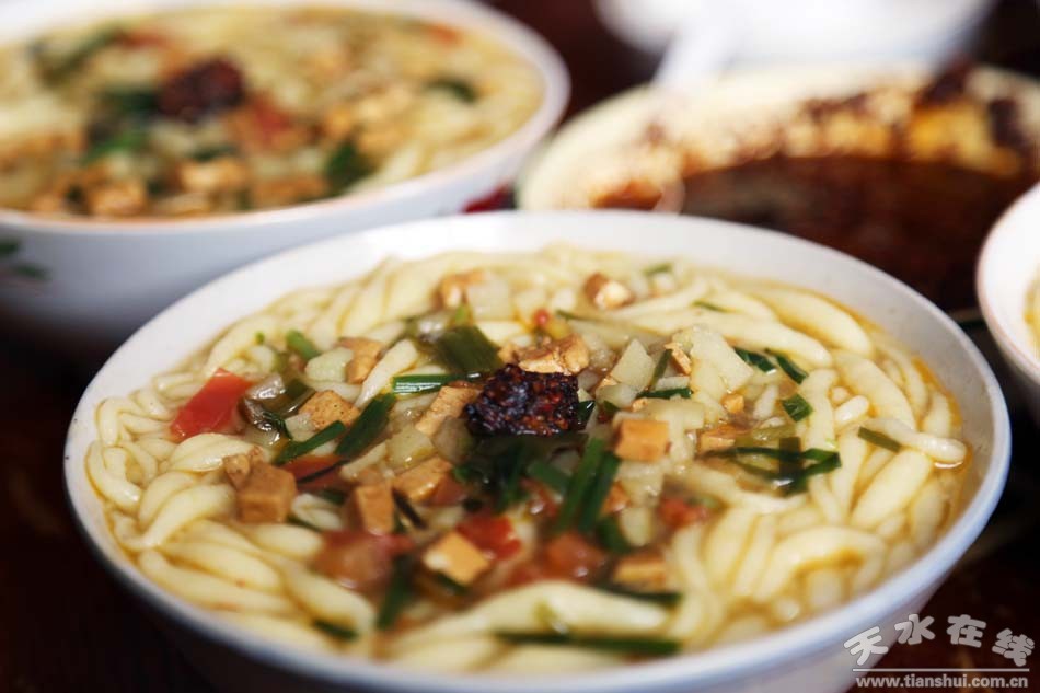 “夠味”指的是:天水的夏天瓜果飄香,有秦州的大櫻桃、秦安的蜜桃、麥積區(qū)新陽鎮(zhèn)的大黃杏、武山的西瓜、清水的核桃,真是琳瑯滿目;還有那吃了讓人清爽的鍋鯫、涼粉和漿水面,保證能讓你吃了樂不思“暑”。