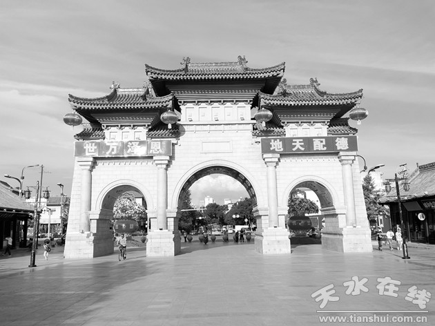 (修繕一新的伏羲廟前東西兩側(cè)牌坊)