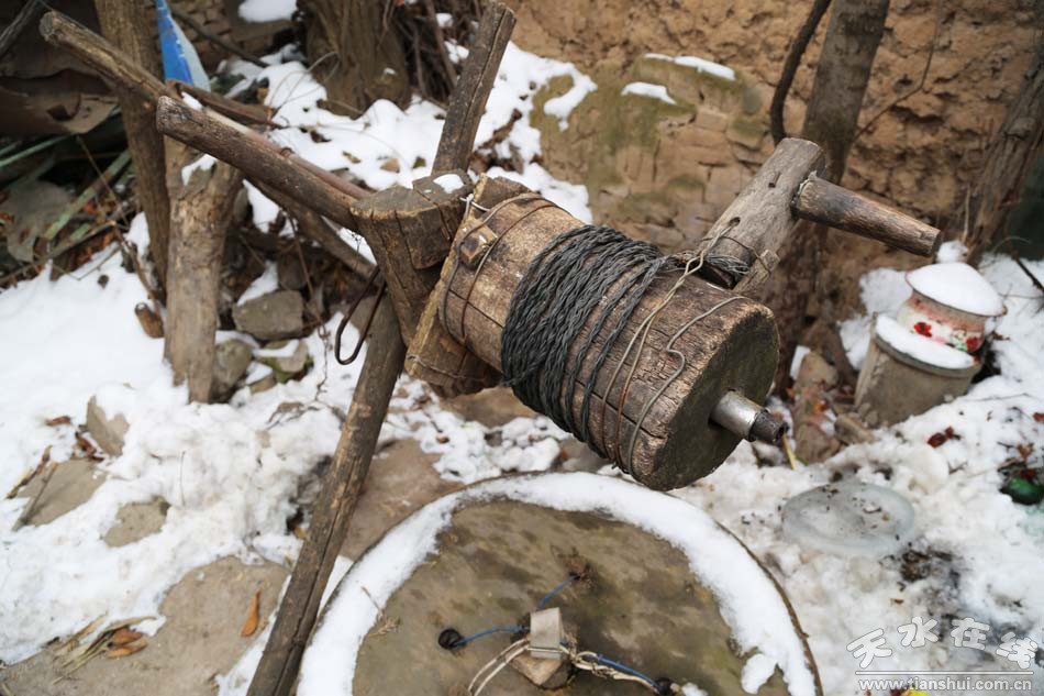 村子的中央便是老人的院落。在宅院門口,擱置著一把陳舊而古老的轆轆,看樣子它躺在這里已經(jīng)很久了。在村里通自來水之前,全村百十戶人家全靠它吃水,它是全村人的功臣。轆轆的出現(xiàn),打消了我前不久登上皇城堡的一個疑問:山如此之高,隗囂和他的軍臣們?nèi)绾谓鉀Q飲水的問題,F(xiàn)在看來,印證了那句“山有多高水就有多深”的俗言。
