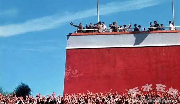 10月1日凌晨4點,我們就起床集合,從駐地北京展覽館整隊出發(fā),去參加在天安門廣場舉行的國慶慶祝大會。隊伍出發(fā)后,也不知走了多長時間,糊里糊涂走到了哪里,更沒有感覺到疲乏,只盼早日到天安門廣場,見到敬愛的毛主席。天亮?xí)r,隊伍在馬路上稍作休息后,上午十時左右,隊伍按序由東向西列隊向天安門廣場方向前進。當(dāng)隊伍進入東長安街時,遠遠地就看見了天安門城樓,我已經(jīng)按捺不住心中的激情,盼望著快一點看到毛主席。12點左右,我們11人一排的隊伍,按要求,手挽著手齊步向前,和其他隊伍一起進入雄偉壯闊的天安門廣場。當(dāng)隊伍行進到天安門城樓東側(cè)華表時,遠遠看見雄偉高大的天安門城樓上,毛主席、周總理、朱老總等中央領(lǐng)導(dǎo)在向行進的隊伍人群不斷的揮手。隊伍離天安門城樓越走越近,我們心中越來越激動,不一會,就看見站在天安門城樓中央的毛主席,他紅光滿面、神采奕奕,揮動著大手,向我們致意,周總理、朱老總胸前佩戴的毛主席像章,在正午陽光的照射下從天安門城樓上向四方閃閃發(fā)出亮光,十分醒目。那一刻,我們歡呼跳躍,激動萬分,佩戴著手表的同學(xué)高聲喊道;“現(xiàn)在是十二點十分,我們見到了毛主席!蔽覀円幻娓吆艨谔,一面緩步向前,隊伍到天安門城樓下正中央,我和大家一起不由自主地停住了腳步,睜大雙眼,目不轉(zhuǎn)睛地往城樓上眺望著領(lǐng)袖的風(fēng)采。時間在一分一秒地飛快走過,后面的隊伍不斷向前擁來,隨隊的解放軍戰(zhàn)士一直在催促我們前進,但我們誰也不想就這么快離開,只能挪動著雙腿,一步一回頭,害怕失去那一生難忘的瞬間。當(dāng)時,隊伍通過的時間有限,我們離城樓又有一定距離,看得也不是那么十分清晰,但身臨其境,毛主席那一刻的形象,銘心鏤骨般深深的篆刻在我的腦海中,離開了天安門廣場,很長一段時間里心情久久不能平息。那一刻的情景像電影般的在腦海中不時回放。