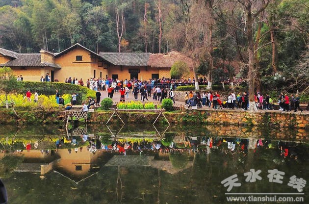 黃色的土墻,和屋后巍峨起伏、綠色遍野的山峰融為一體,在藍天白云的映照下,顯得格外莊重、醒目。屋前一大一小兩個池塘,水清如鏡,左右兩邊稻田、曬谷場,給人一種山水相依,綠水青山,農(nóng)家耕作之地的感覺。1893年12月26日,毛主席在這里出生,并在此度過了他的童年與少年時代,少年毛澤東曾經(jīng)在這里的池塘游過泳,田里種過稻田,在故居上私塾,讀書成長。1927年1月10日,毛主席為尋求真理,離家外出求學(xué)。