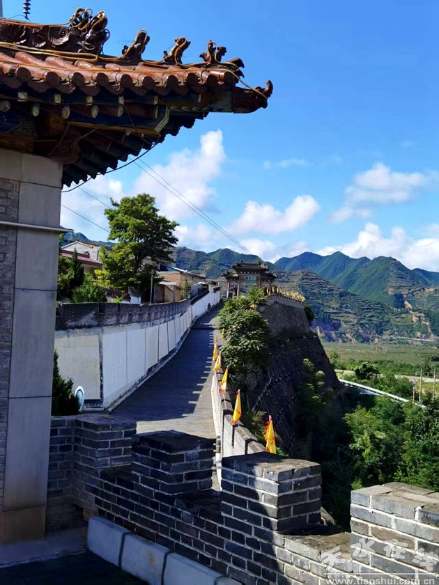 吳砦古城面積近二百畝,呈北窄南寬不規(guī)則梯形,背靠野鶴山,東傍秦嶺河,西北臨渭水,三面環(huán)水,一面靠山,地勢(shì)突兀易守難攻。漫步古城,紀(jì)信祠、古戲樓、上馬石、石幢居于城中軸線上,古樸典雅,氣度非凡,青石小路縱橫交錯(cuò),民居農(nóng)舍鱗次櫛比,城堡與山麓相映成輝,依然保留著那份古樸與寧?kù)o。城墻下,老人們圍坐在暖陽(yáng)里,講述著古老的傳說(shuō);孩子們?cè)诮窒镏墟倚Ρ寂,給這座古城帶來(lái)了歡聲笑語(yǔ)。民清時(shí),吳砦古城是秦州至寶雞的茶馬古道,鹽、藥材、皮毛等貨物在此交易,成為甘陜川以及隴東南物資集散地,交易十分興隆。如今,古城每年要舉辦四次盛大廟會(huì),城隍廟會(huì)、高蹺、與社火等表演節(jié)目豐富多彩,吸引了四而八方的人前來(lái)觀看,文化搭臺(tái),經(jīng)濟(jì)唱戲,甘陜商貿(mào)交流高潮迭起。古城四周,賓館、酒店、快遞站、歌舞廳星羅棋布,每當(dāng)夜幕降臨,各種肉食燒烤、風(fēng)味小吃等美味佳肴應(yīng)有盡有,渭河對(duì)岸的陜西人紛至沓來(lái),喝著美酒,載歌載舞,歡聲笑語(yǔ)此起彼伏,響徹整個(gè)渭河峽谷,直到東方露白。這些年古城里的青年男女走出家門闖世界,在外打工賺錢回報(bào)家鄉(xiāng)。有兩個(gè)小伙車在外打工多年,回到古城后將積攢的200多萬(wàn)拿出來(lái),在古城路邊建起了酒店、賓館,安置閑散勞動(dòng)力數(shù)十名,生意紅紅火火。