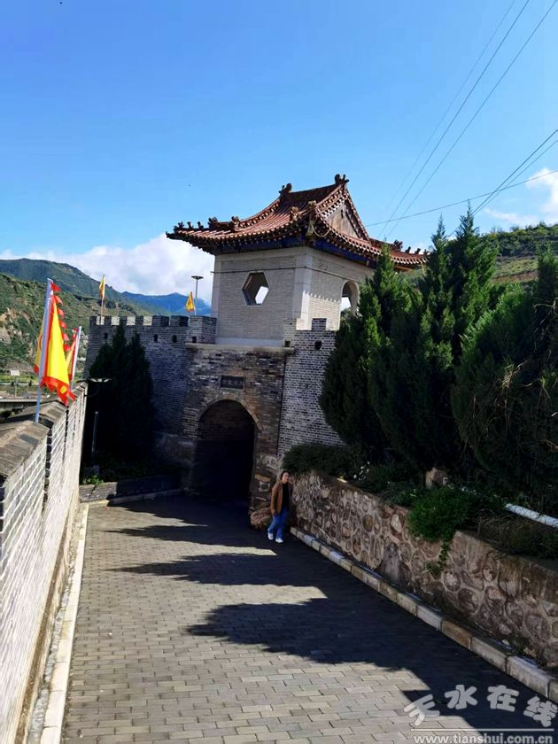 吳砦文化古跡眾多,且富有歷史價(jià)值。驅(qū)車?yán)^續(xù)前行,我們興致勃勃來(lái)到鐵瓦寺。走進(jìn)玉泉閣,只見(jiàn)兩面墻壁上的元代壁畫完整如初,所繪畫的人物栩栩如生,形態(tài)逼真,姿容美麗,筆墨彩繪,依然清晰,光彩照人。又有誰(shuí)能知道,在那個(gè)特殊的年代,為了壁畫不被人為破壞,吳砦人用泥巴糊住了墻面,保護(hù)了這些文物!皷|川古鎮(zhèn)鎖梵煙,鐵風(fēng)銘文萬(wàn)歷年。古柏森森撐殿傾,青燈閃閃映佛前。墻邊繪畫說(shuō)壇事,寺里修復(fù)盼眾緣?蓢@新屋常做舊,何如善款救其傳!币晃辉(shī)人游此地,賦詩(shī)感慨物是人非,道出了多少人的心聲。離開(kāi)鐵瓦寺,大家游意未盡,沿著國(guó)道徑直往東行駛,穿越陜西省西大門,透過(guò)車窗,眺望前方,峽谷豁然開(kāi)闊,山脈連綿不斷,與藍(lán)天相接,甘陜溝壑翠綠欲滴,一條巨龍似的山峰巍然屹立在渭河南岸,給人一種巍峨壯觀的視覺(jué)感受。啊!這就是稱之為“懸崖上的抗金古城”吧!