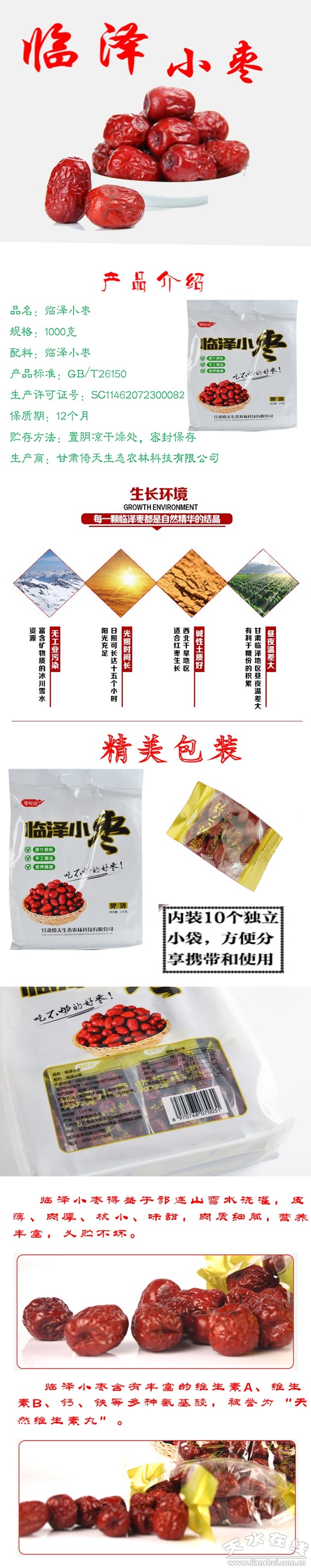 臨澤縣地處古“絲綢之路”—甘肅河西走廊中部。千百年來,涓涓的祁連雪水和優(yōu)越的自然環(huán)境孕育出了品質優(yōu)良的臨澤小棗。臨澤小棗以核小味甜、肉質細膩、營養(yǎng)豐富、久貯不壞而聞名遐爾。其鈣、磷、鐵、糖維生素C含量較高...被譽為“天然維生素C丸”。